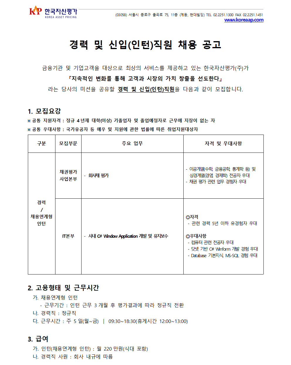 [취업] [한국자산평가] [채권, IT] 경력 및 신입(인턴)직원 채용공고